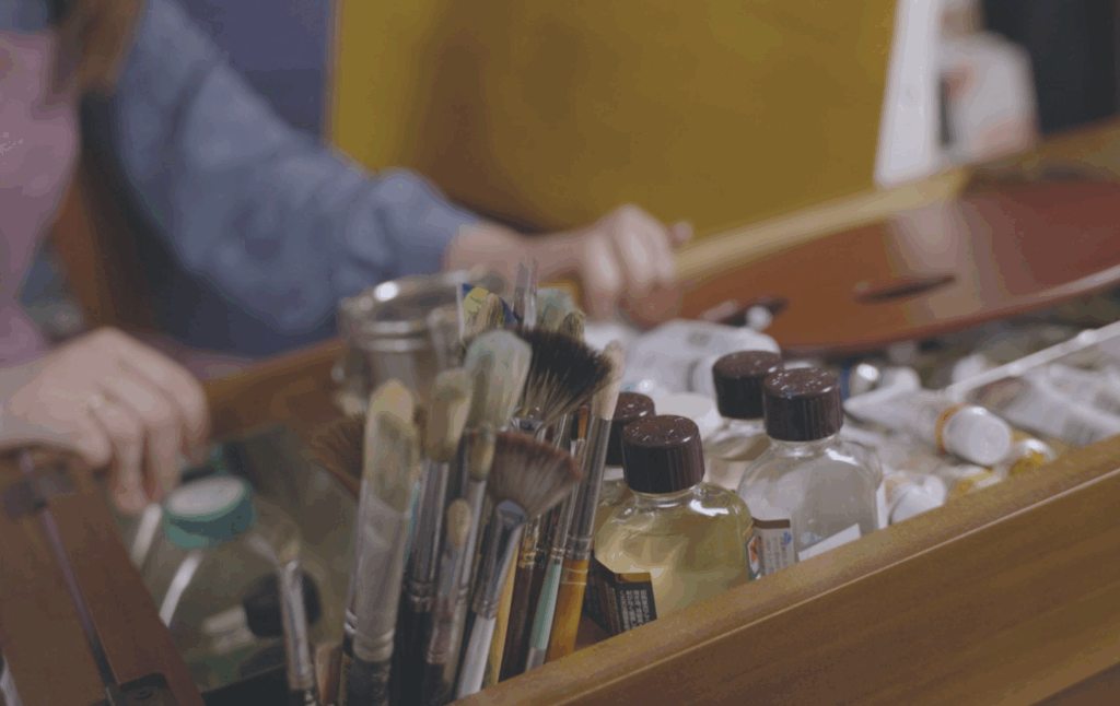 このプロセスは、いぬいさんの創作活動が、特別な空間や時間だけでなく、日常生活のあらゆる瞬間に根ざしていることを示している。アイデアをメモし、スケッチを重ねるという地道な作業が、彼女の作品の深みを支えているのだ。また、マットなオイルへのこだわりは、彼女が単なる美しさだけでなく、作品が持つ雰囲気や感情的な質感をいかに大切にしているかを物語っている。